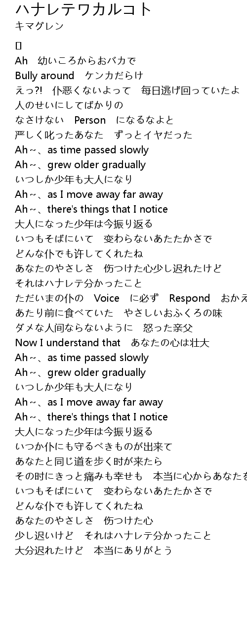 ハナレテワカルコト 歌词