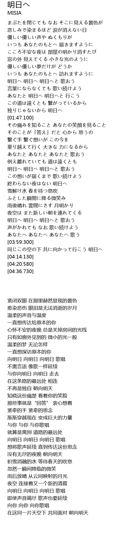 | [03:39.460] | 向明日 向明日 向明日 歌唱 |