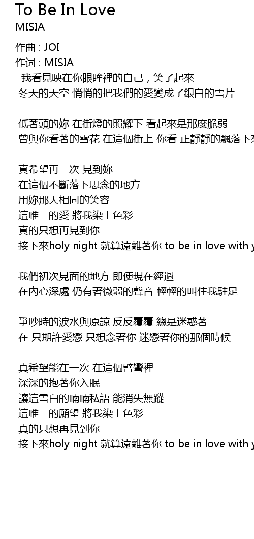 | 接下來holy night 就算遠離著你 to be in love with you | |