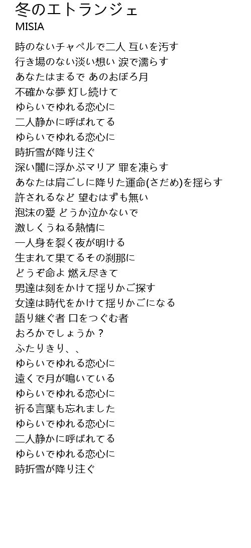 | 歌曲 | 冬のエトランジェ |