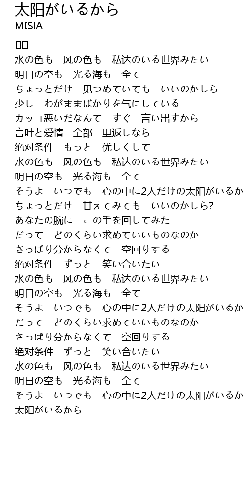 | そうよ いつでも 心の中に2人だけの太阳がいるから | |