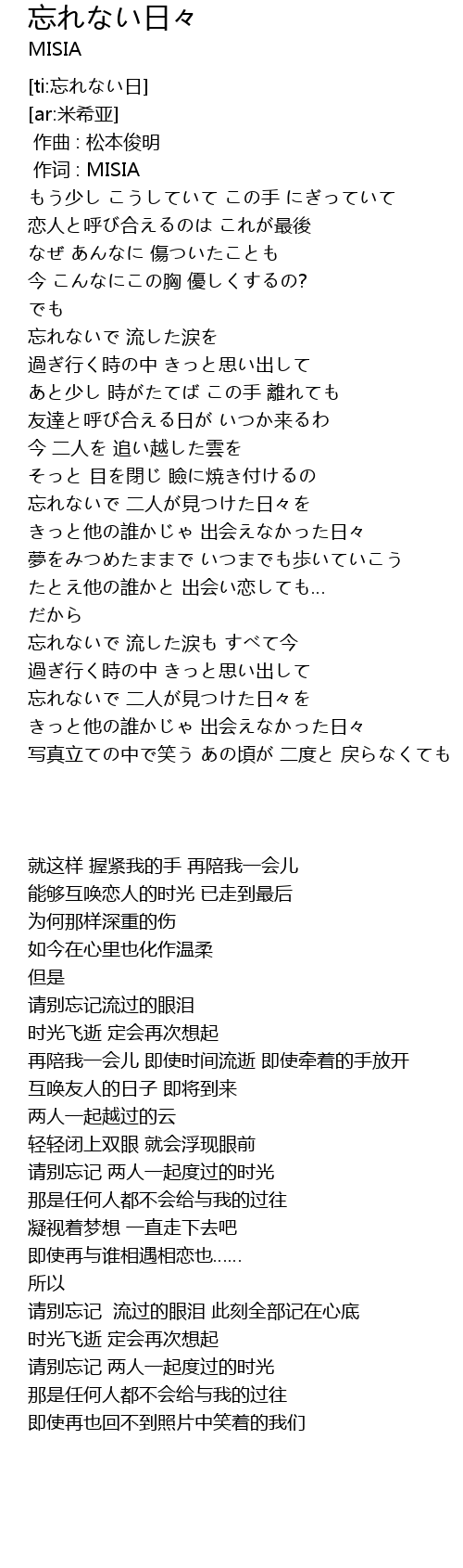 | [02:43.193] | 忘れないで 二人が見つけた日々を |