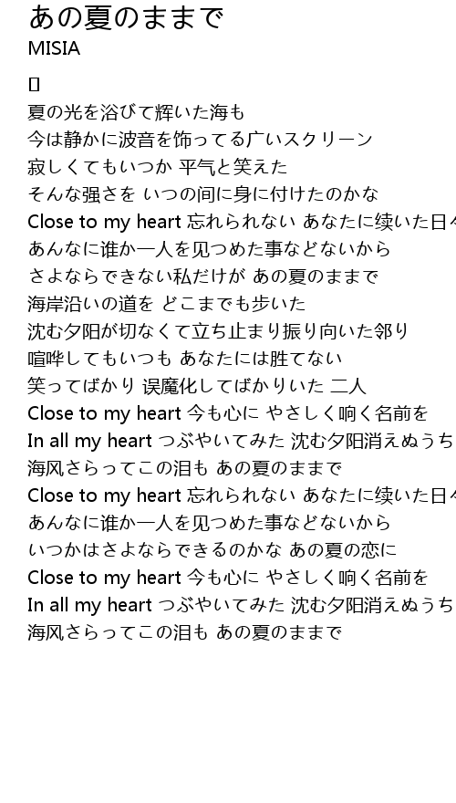 | 海风さらってこの泪も あの夏のままで |