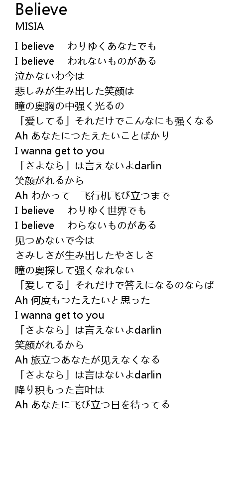 | [00:17.10] | I believe わりゆくあなたでも |