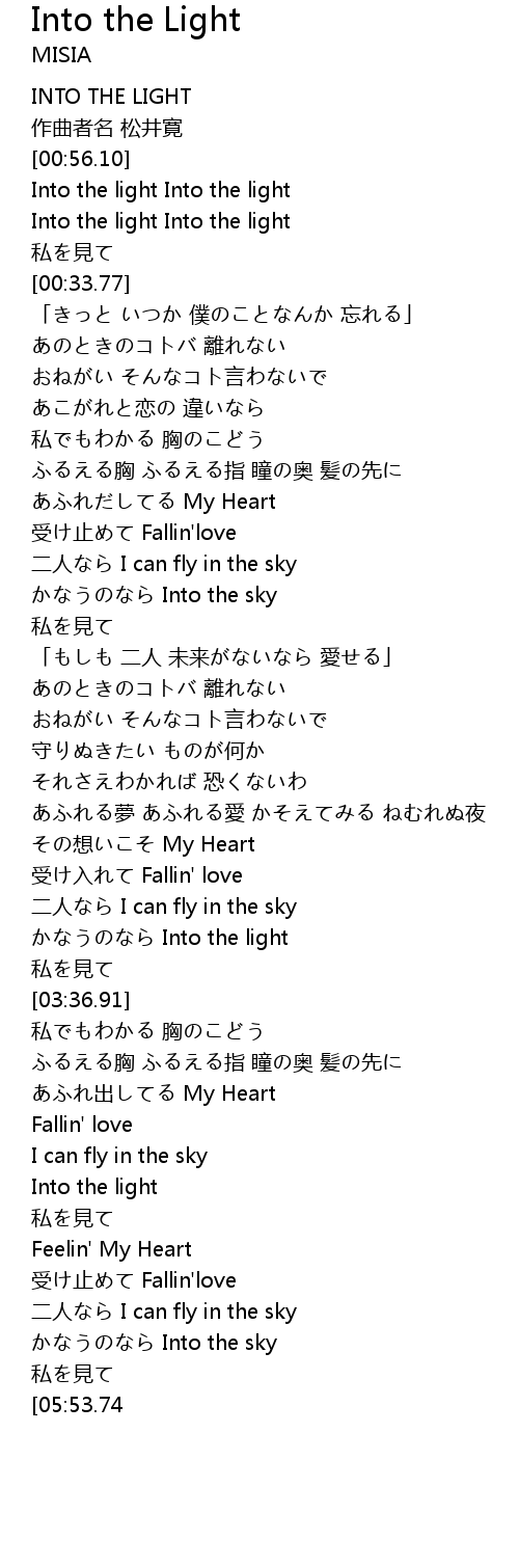 | [02:53.07] | あふれる夢 あふれる愛 かそえてみる ねむれぬ夜 |