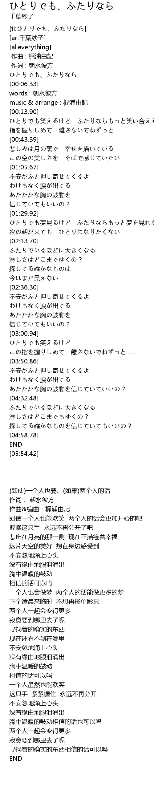| [02:04.34] | 次の朝が来ても ひとりになりたくない |