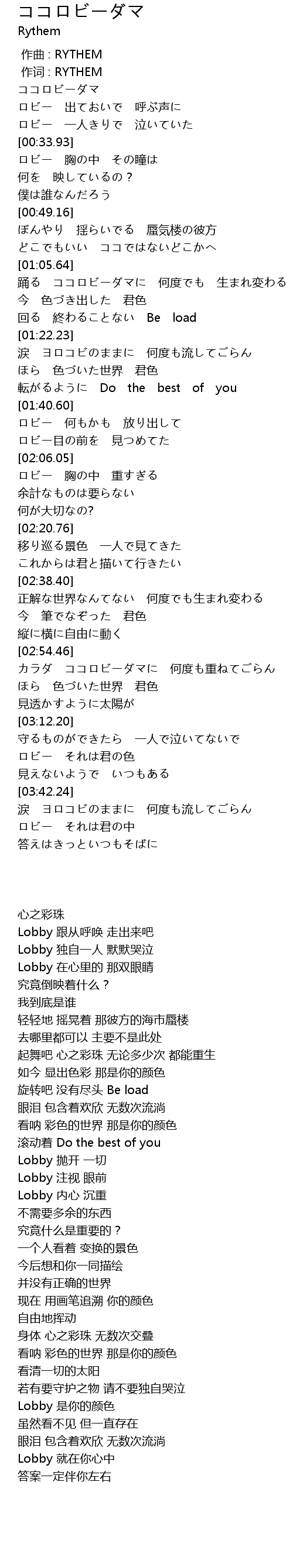 | [03:34.74] | Lobby 是你的颜色 |