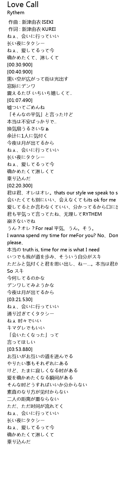 | [02:43.560] | 君も平気って言ってたね、无理してRYTHEM 崩さないでね |