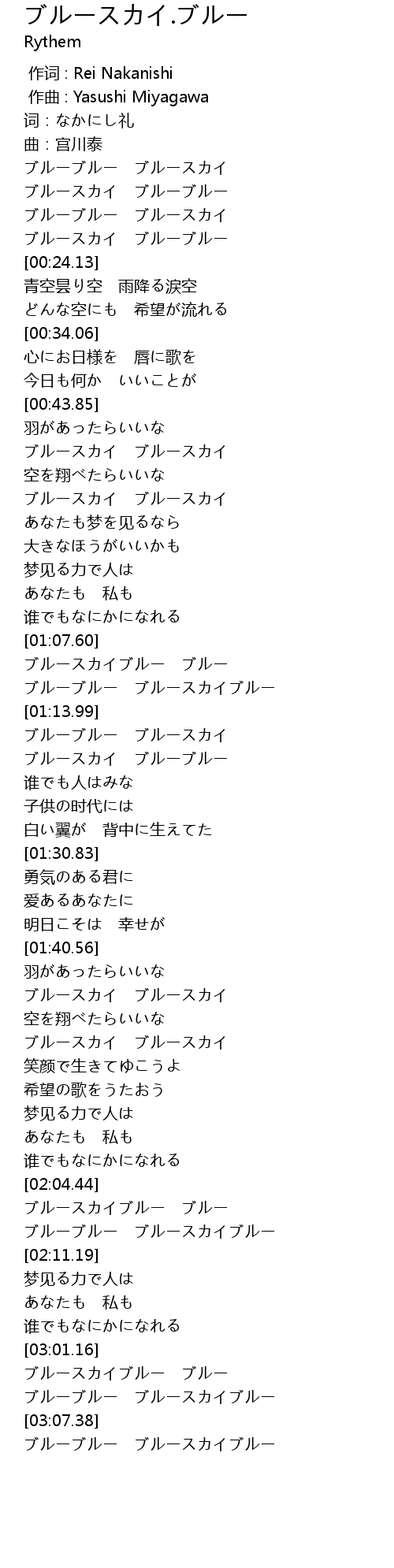 | [03:01.79] | ブルースカイブルー ブルー |