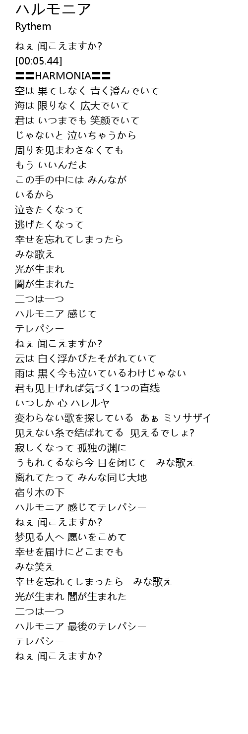 | [03:53.98] | ハルモニア 最後のテレパシー |