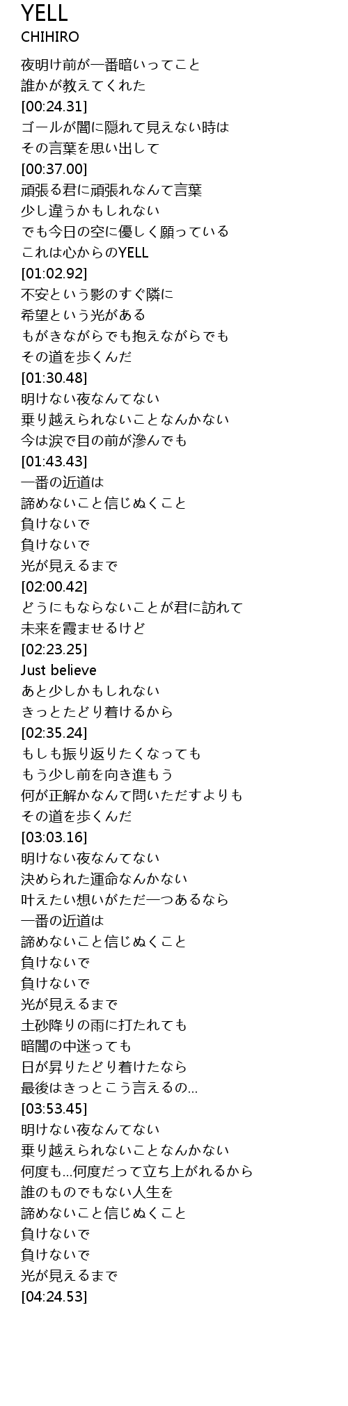 | [03:19.33] | 諦めないこと信じぬくこと |