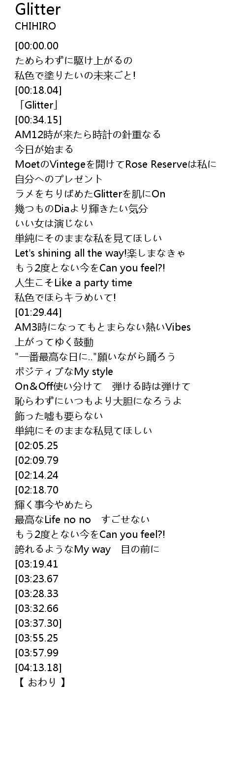 | [00:55.12] | ラメをちりばめたGlitterを肌にOn |