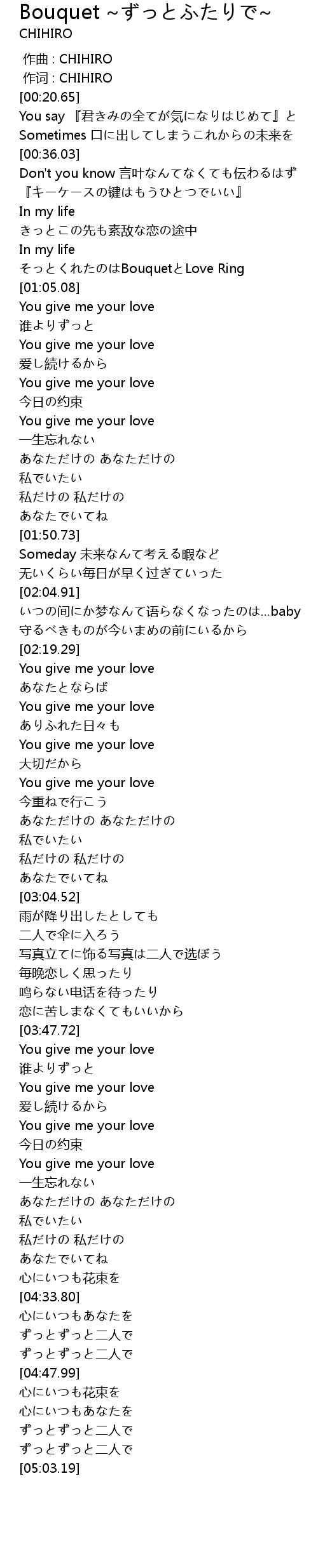 | [00:59.45] | そっとくれたのはBouquetとLove Ring |