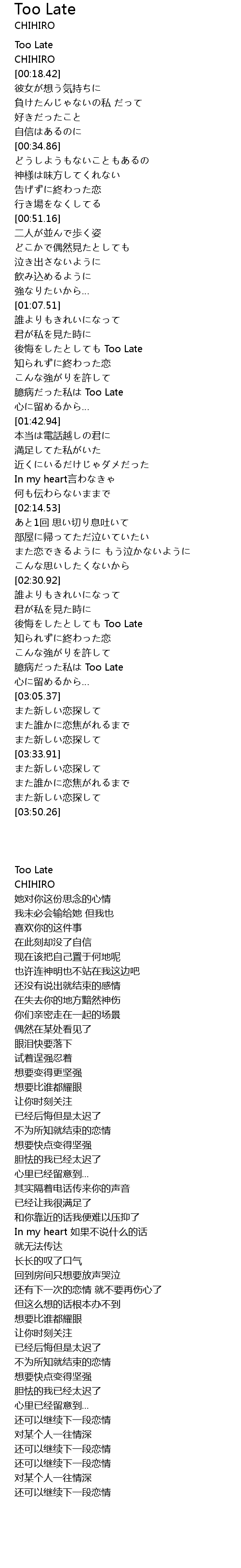 | [02:39.10] | 後悔をしたとしても Too Late |