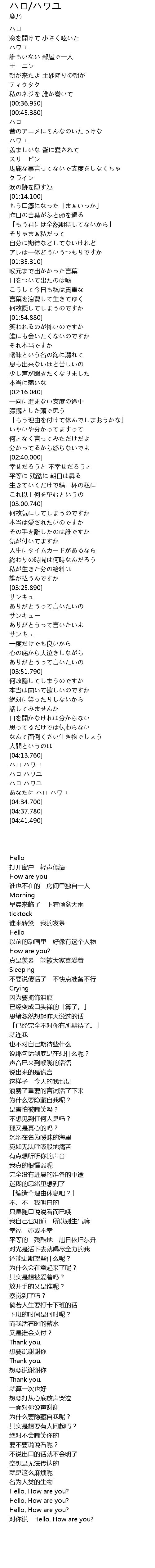 | [04:29.500] | あなたに ハロ ハワユ |