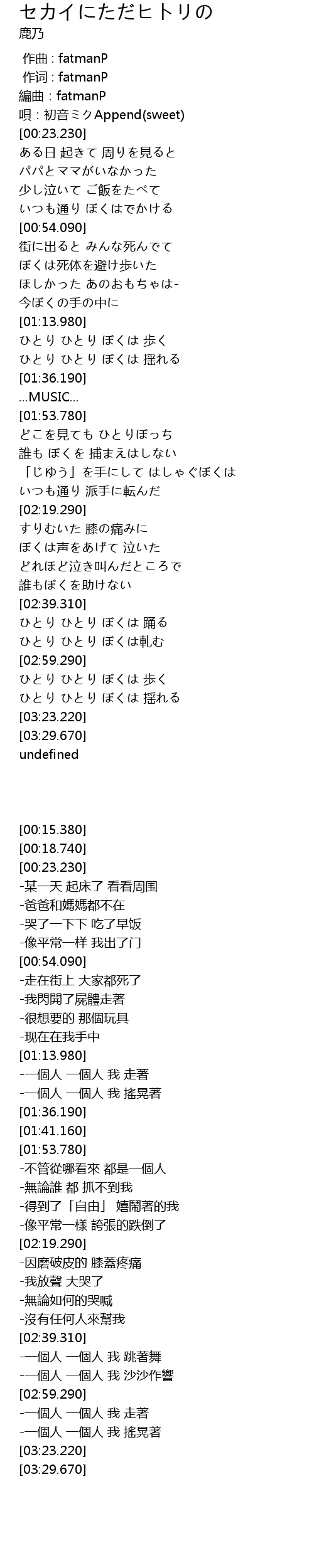 | [00:15.380] | 編曲:fatmanP |