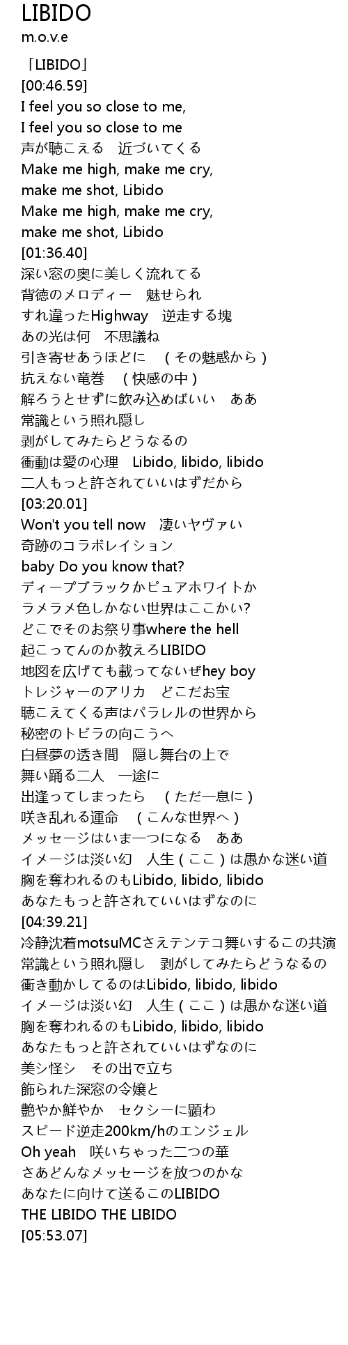 | [05:03.61] | 衝き動かしてるのはLibido, libido, libido |