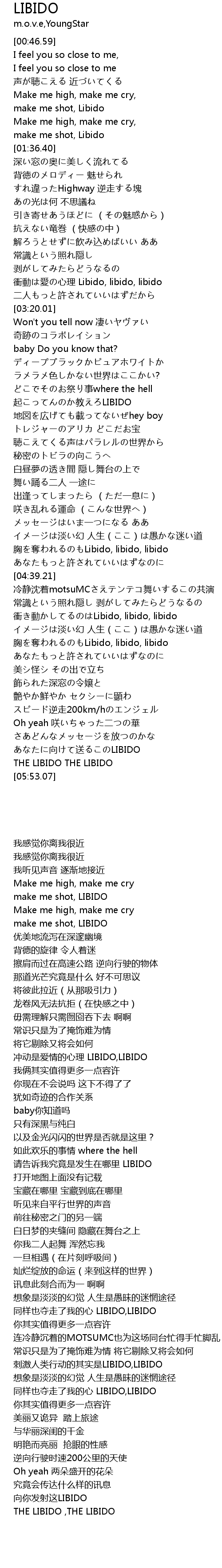 | [01:30.47] | make me shot, LIBIDO |