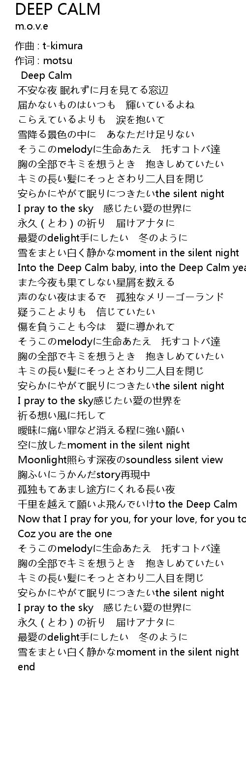 | Into the Deep Calm baby, into the Deep Calm yeah | |