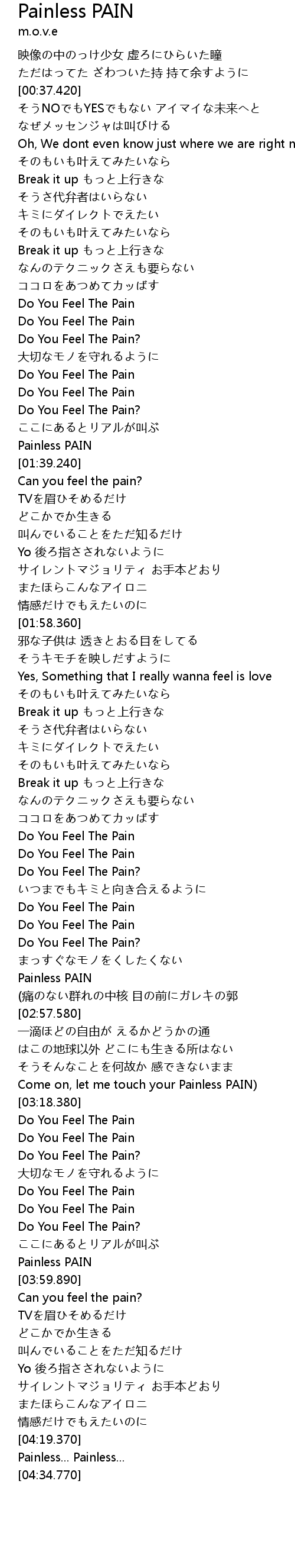| [02:39.490] | Do You Feel The Pain? |