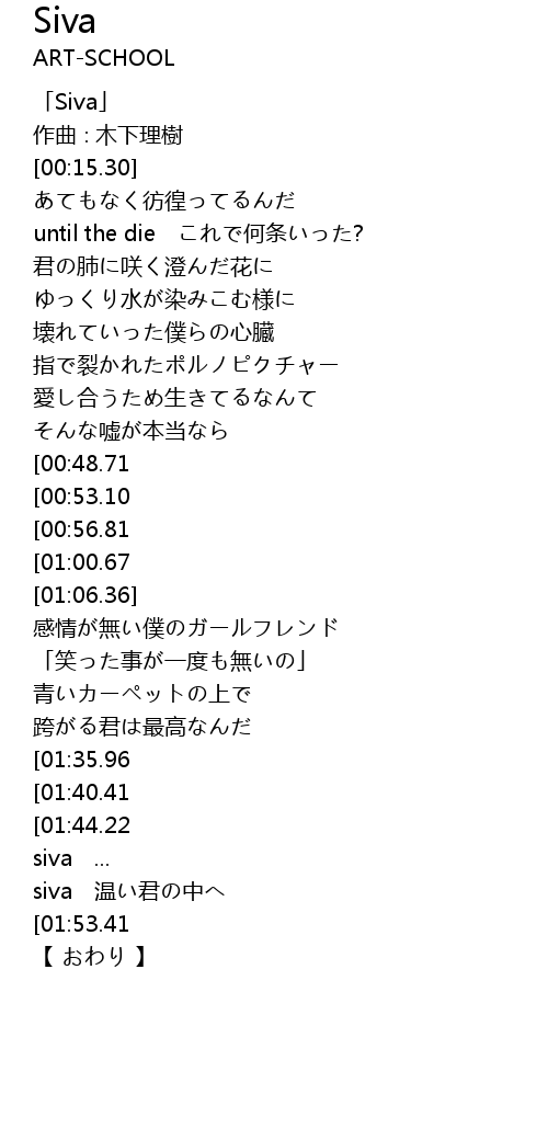 | [00:01.30] | 「Siva」 |