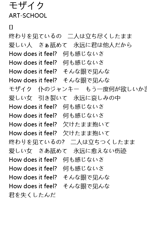 | How does it feel? 欠けたまま抱いて | |