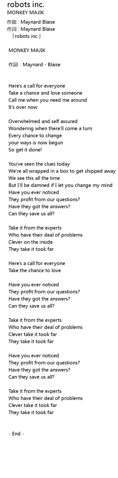 | 作詞:Maynard・Blaise | |