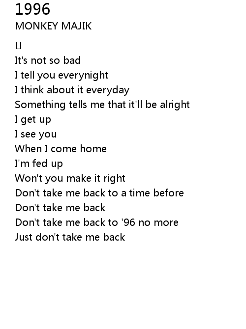 | Don't take me back to '96 no more | |