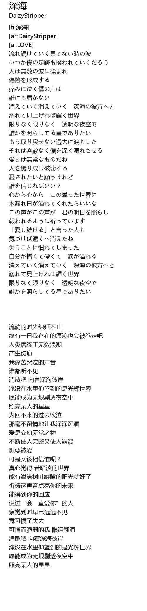 | [04:00.75] | 消えていく消えていく 深海の彼方へと |
