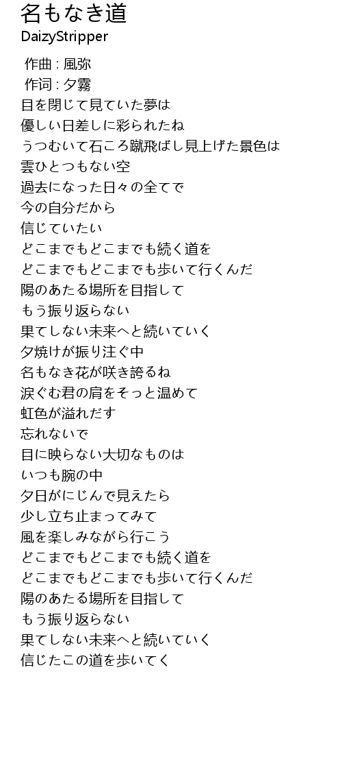 | [03:16.58] | どこまでもどこまでも続く道を |