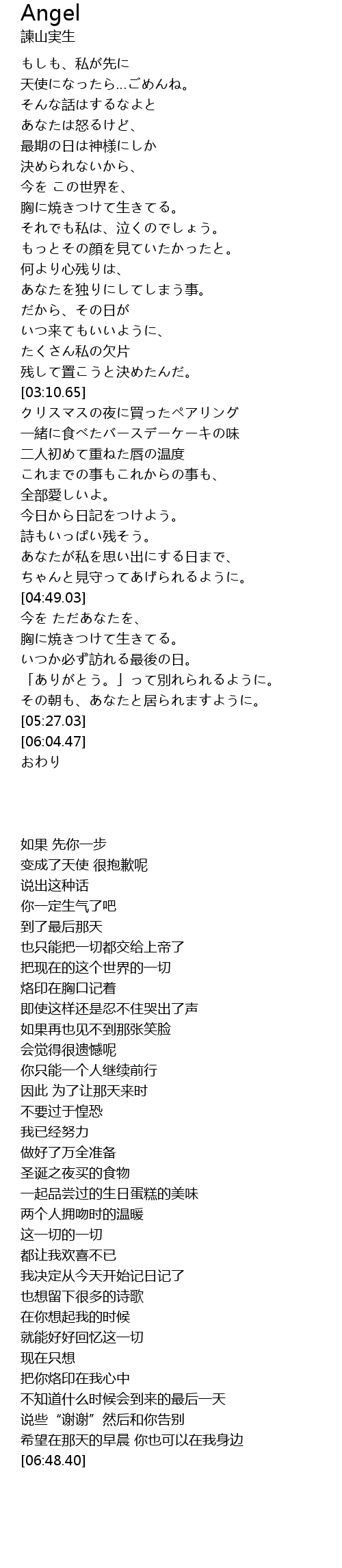 | [01:06.62] | 天使になったら…ごめんね。 |