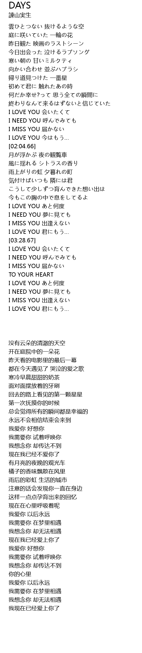 | [04:04.37] | I LOVE YOU 君にもう… |