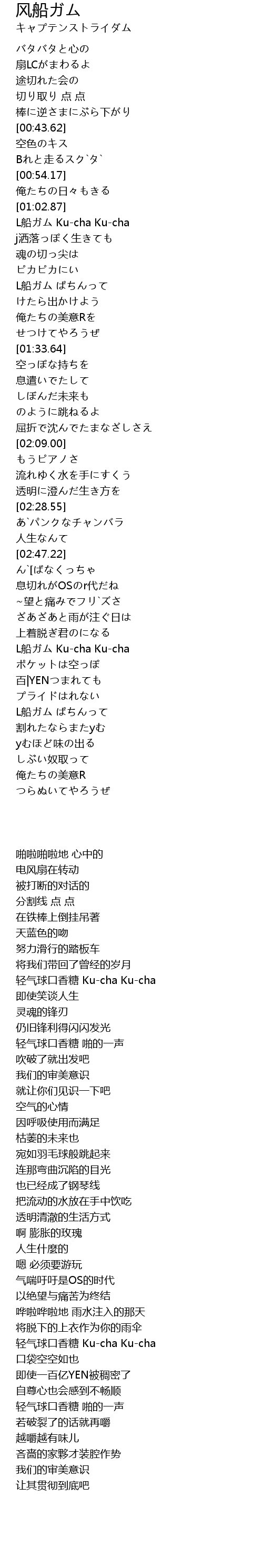 | [01:03.76] | 轻气球口香糖 Ku-cha Ku-cha |