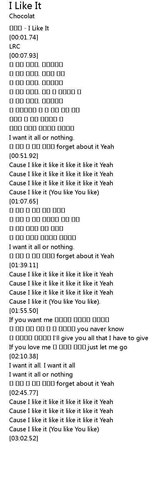| [00:52.44] | Cause I like it like it like it like it Yeah |
