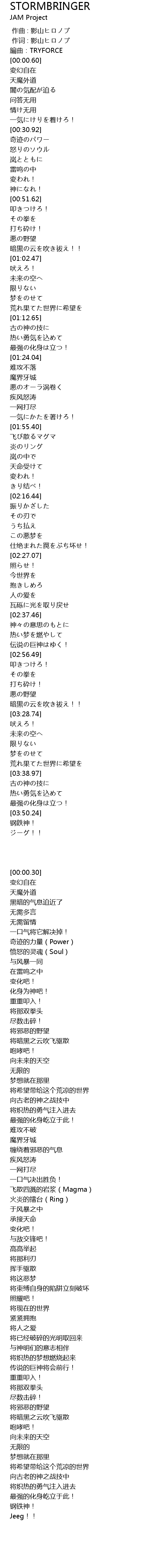 | [00:00.00] | 作曲 : 影山ヒロノブ |