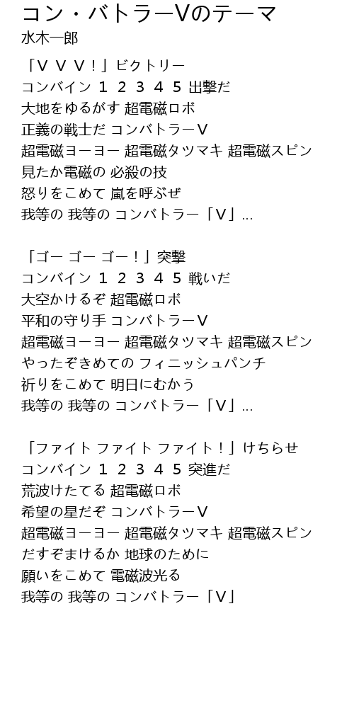 | 歌曲 | コン・バトラーVのテーマ |