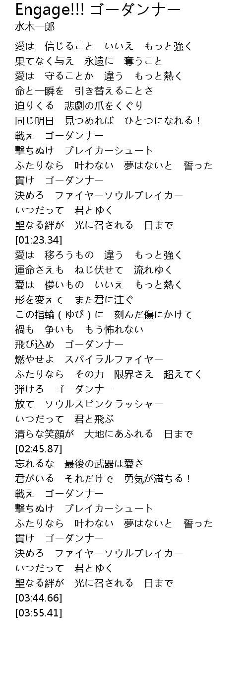 | [02:28.61] | 弾けろ ゴーダンナー |