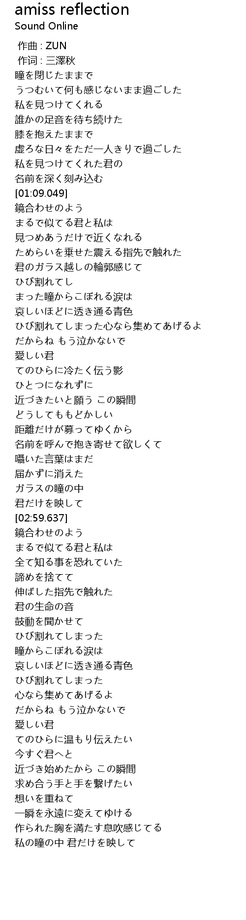 | 歌曲 | amiss reflection |