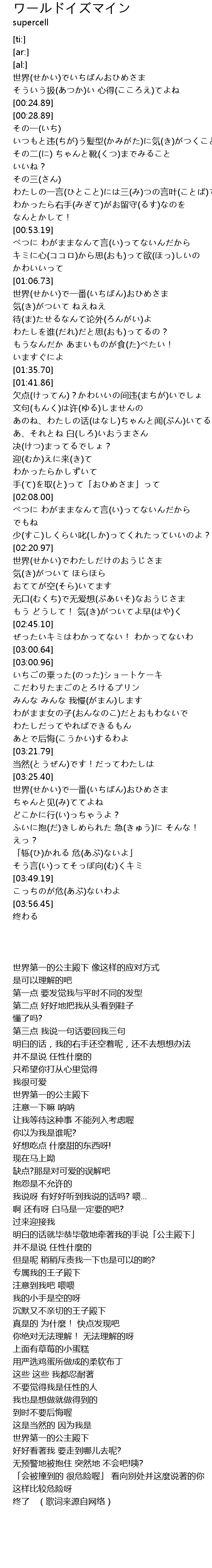 | [03:25.41] | 世界第一的公主殿下 |