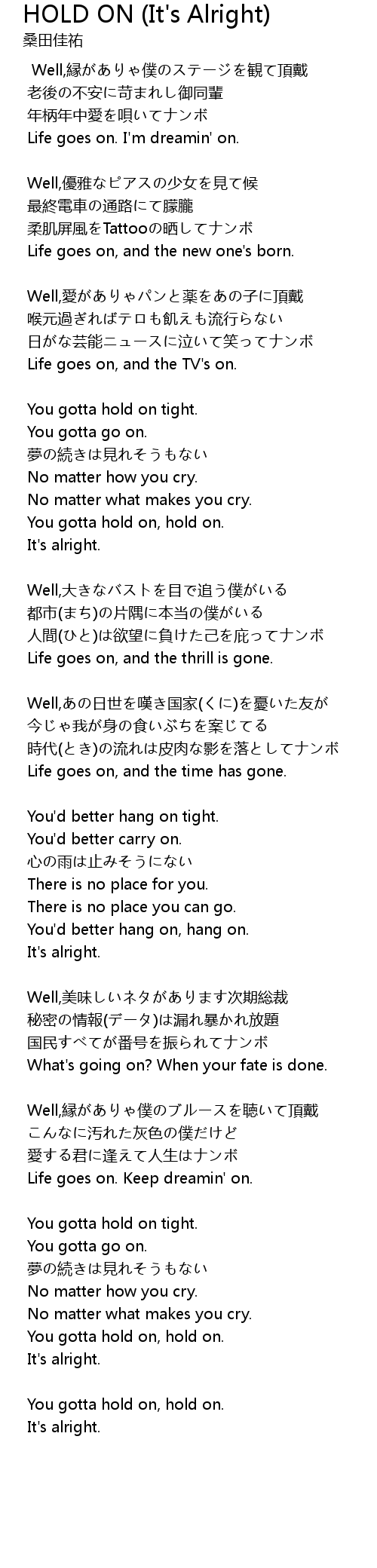 | 歌曲 | HOLD ON (It's Alright) |