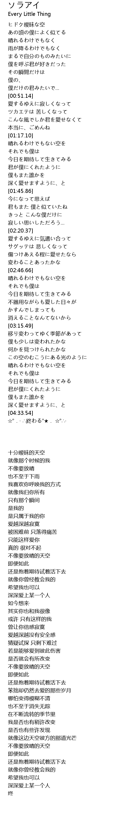 | [04:03.49] | 不像要放晴的天空 |