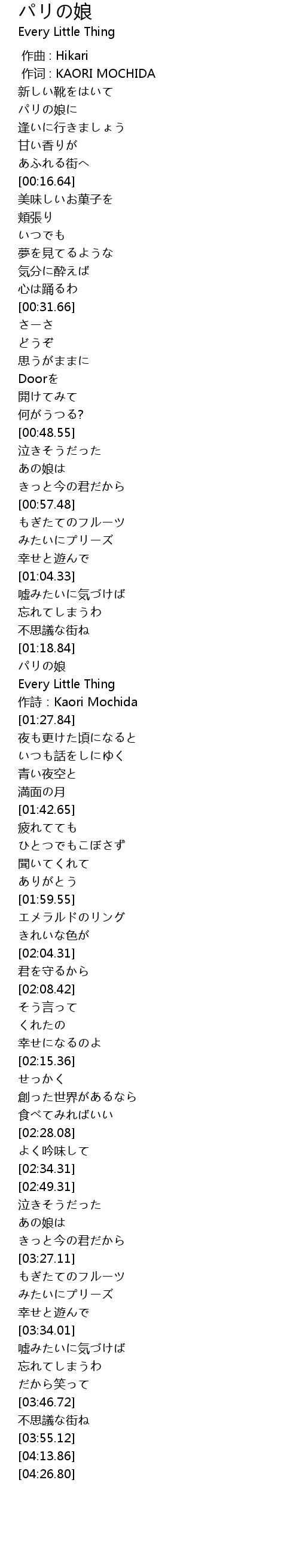 作词 : KAORI MOCHIDA |