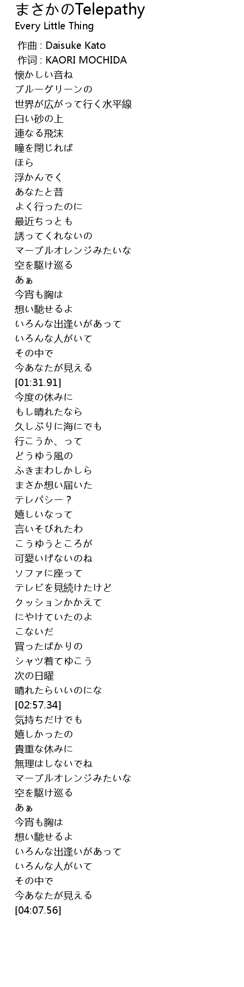 | [00:01.00] | 作词 : KAORI MOCHIDA |