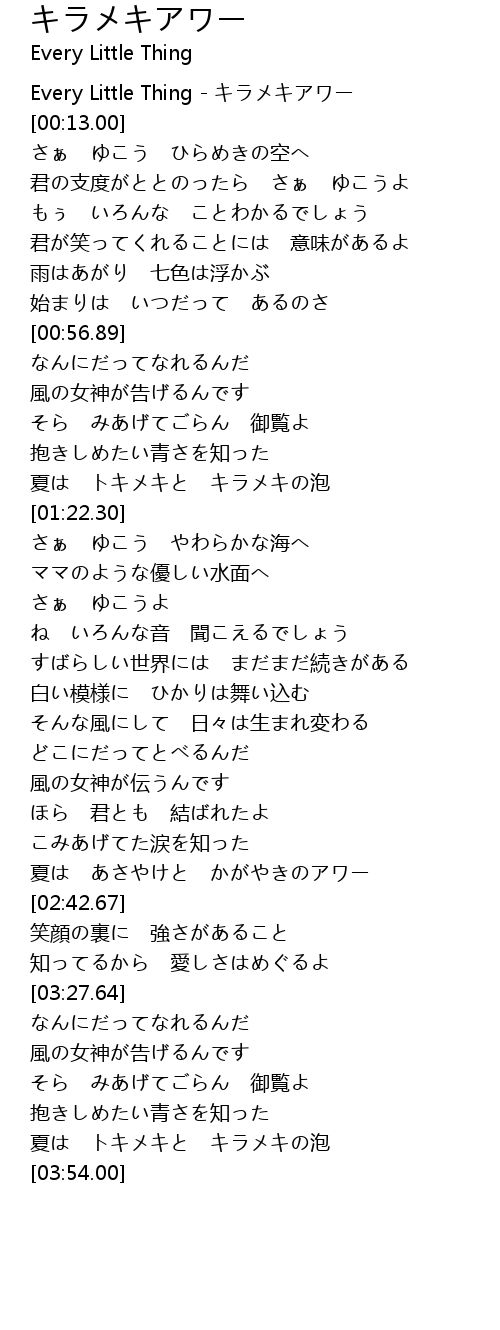 | [00:02.00] | Every Little Thing - キラメキアワー |