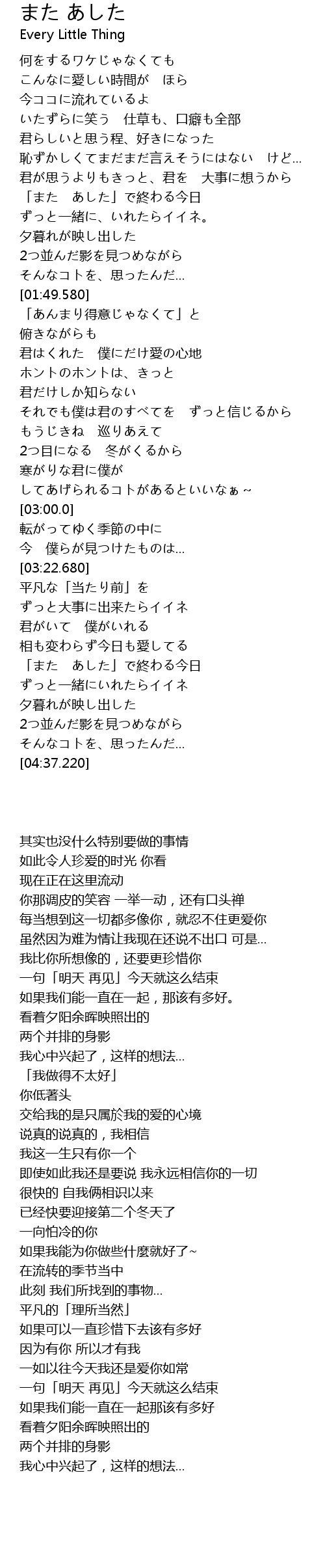 | [04:07.180] | 「また あした」で終わる今日 |
