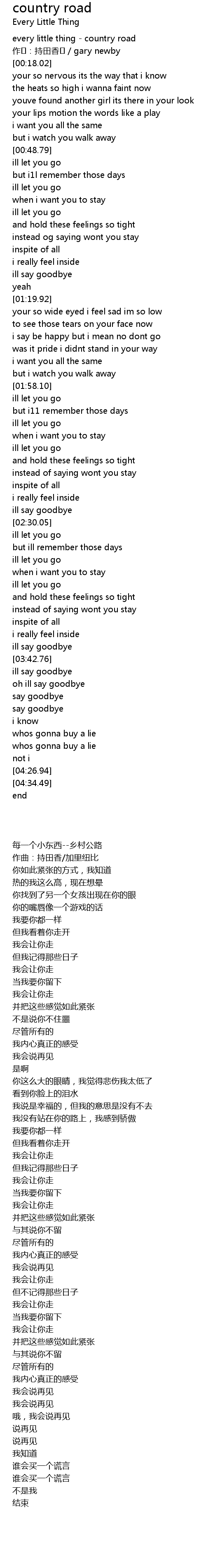 | [00:00.00] | 每一个小东西--乡村公路 |