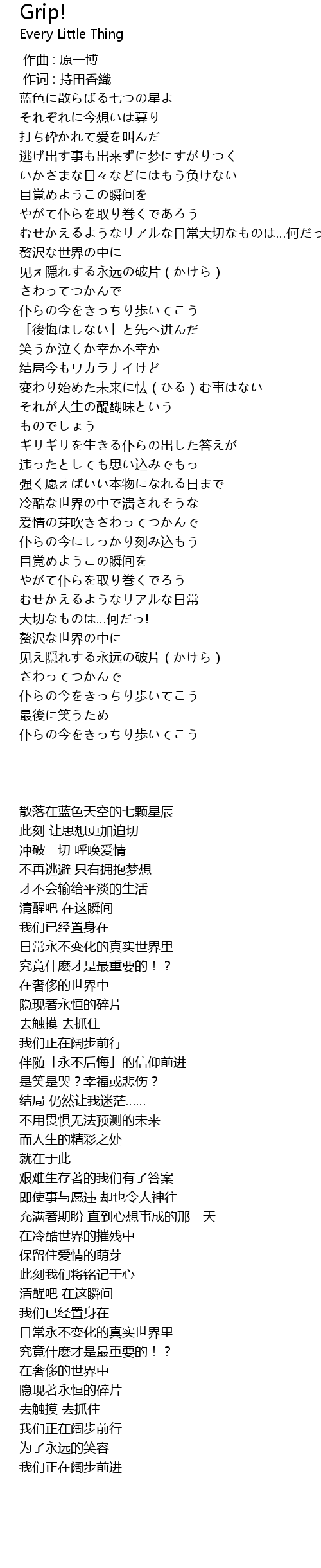 | [01:17.688] | 见え隠れする永远の破片(かけら) |