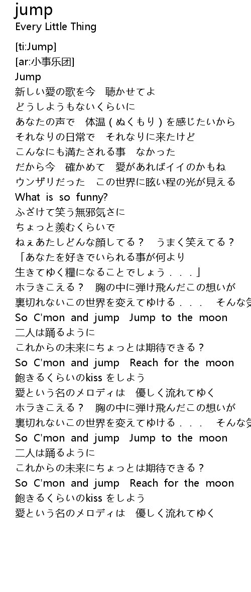 | [02:26.66] | So C'mon and jump Reach for the moon |