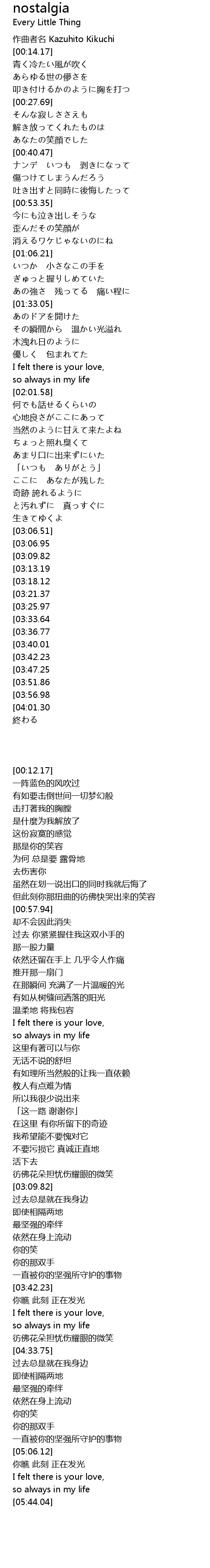 | [00:12.17] | zuò qǔ zhě míng Kazuhito Kikuchi |