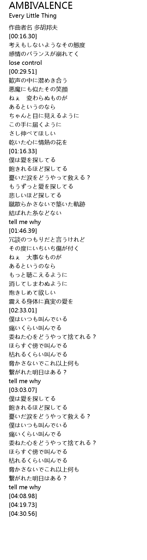| [03:01.30] | tell me why |